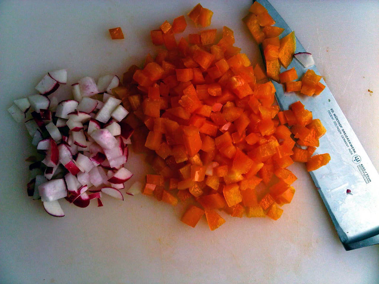 What to make for a Family Day dinner when everyone in the family is coming and going at different times to/from skating, skiing or playing hockey? Not very sit-down-and-eat-like-a-nuclear-family night but just our reality so I needed something quick and easy that could be served fresh for each of them and still warm their tummies after a day spent out in the cold. This family favourite by Giada fit the bill. Takes less than 10 minutes to throw together and then mere moments under the broiler and right onto the table. I made some couscous earlier in the afternoon, and tossed in some sweet peppers, leftover radish, dill and toasted almonds, so the side dish was ready to go when the plates hit the table.